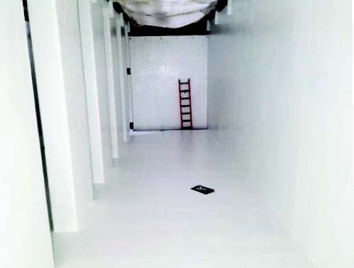 A continuación, los aplicadores aplicaron una capa de laminado epoxi blanco para sellar la capa de lámina de fibra de vidrio. La aplicación del epoxi blanco sobre las superficies verdes permitió a los aplicadores asegurar una película final uniforme y sin poros. Cualquier área verde visible se pudo retocar rápidamente. Además, este contraste de color ayuda a la planta a supervisar el estado de los revestimientos, ya que cualquier mancha verde visible al reemplazar los cartuchos de filtro, por ejemplo, indica daños en la capa superior (Fig. 7).