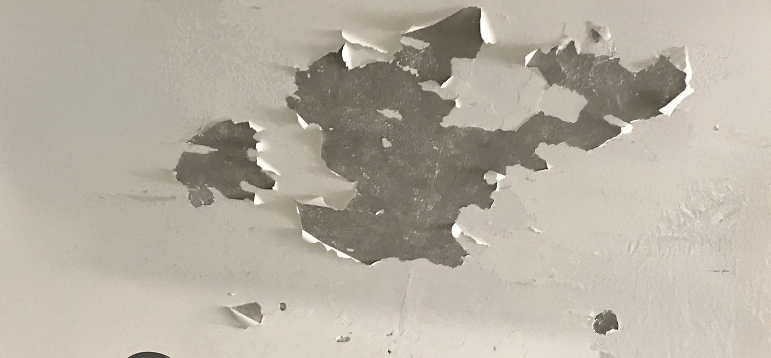 Las superficies de hormigón, incluyendo el techo, las paredes, las columnas y las barricadas, estaban recubiertas con pintura blanca. En algunas zonas del garaje se observaba un desprendimiento considerable del recubrimiento, principalmente en las secciones en forma de «T» del techo. El desprendimiento era mínimo en las columnas, las barricadas y las paredes. El garaje se había construido en tres secciones. Una de las secciones se construyó hace aproximadamente 30 años, y el desprendimiento era notablemente mayor en esa sección. El desprendimiento era mínimo en la sección más nueva. La sección central presentaba algunas zonas con un desprendimiento grave, pero no tanto como la sección más antigua.